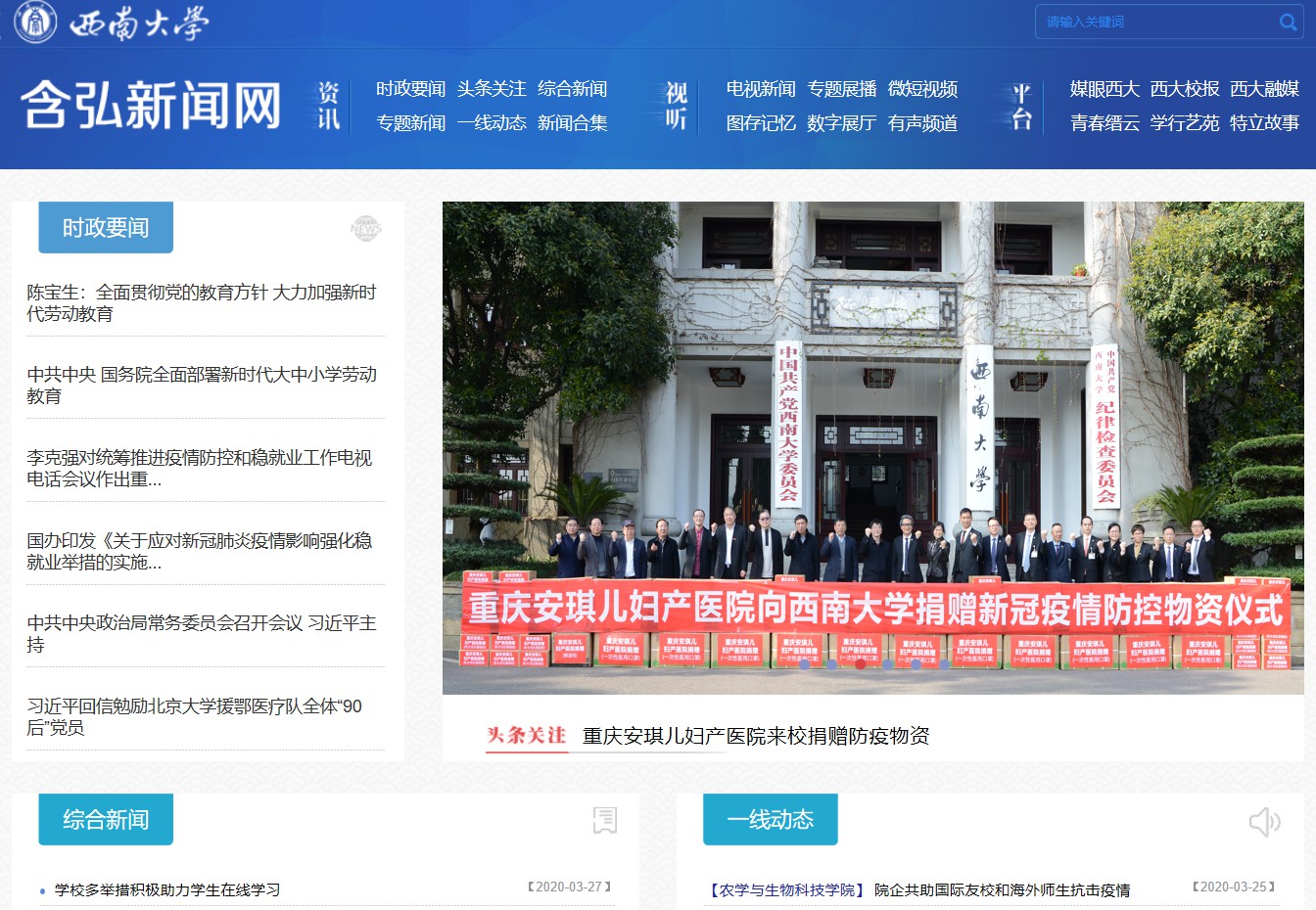 含弘新闻网立足于大力宣传党的路线方针政策,统一思想,凝心聚力,积极发挥网络育人作用;聚焦学术、学生、学者,重点突出学术和文化报道,充分体现“特立西南,学行天下”的大学精神;完善学校视觉形象识别系统,凸显学校厚重的文化底蕴和鲜明的形象特色;满足移动互联时代需求,以服务用户为导向,优化用户体验,进一步增强学校门户网站的实效性和影响力。