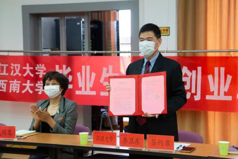 李卫东在致辞中代表全体师生向bat365正版唯一官网对江汉大学毕业生就业创业工作的关心、支持和帮扶表示衷心感谢。李卫东表示,教育部启动实施的就业创业“一帮一”行动是江汉大学发展的重大机遇,是向重点高校学习的重大机会,也是借力提升的重要途径。前期,两校就业、创业、教学、研工等部门的同志已经进行了充分沟通,在就业信息共享、就业市场开拓、就业指导、就业管理服务、大学生创业、实验教学等方面表达了合作意向,并且已经开展了共享就业信息平台、筹备两校联合网络招聘,组织毕业生收看就业辅导讲座等工作,搭建起了友好合作平台。以此次结对帮扶行动为契机,期望bat365正版唯一官网能对江汉大学毕业生就业创业工作给予大力帮扶;在人才培养、教师培训、教学改革、学科建设等方面进行深度合作;在促进江汉大学一流学科专业建设、一流人才队伍建设、一流校园文化建设上给予更多指导。渝汉两地共饮一江水,期待两校的友谊之花在长江之水的浇灌下常开不败!