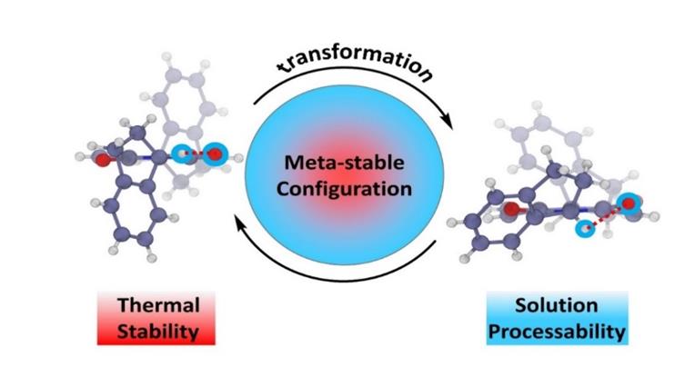 近日,化学化工学院李明教授、何荣幸教授团队在材料化学领域国际知名期刊《Advanced Functional Materials》上在线发表题为“Meta-stable molecular configuration enables thermally stable and solution processable organic charge transporting materials”(介稳分子构型构建热力学稳定且溶液可处理的有机电荷传输材料)的研究论文,首次使用“介稳构型”这一概念阐述了分子热稳定性和溶解度之间取得平衡的微观机制,提出构建兼具超高稳定性和优异溶液可加工性的有机电荷传输材料的新思路。