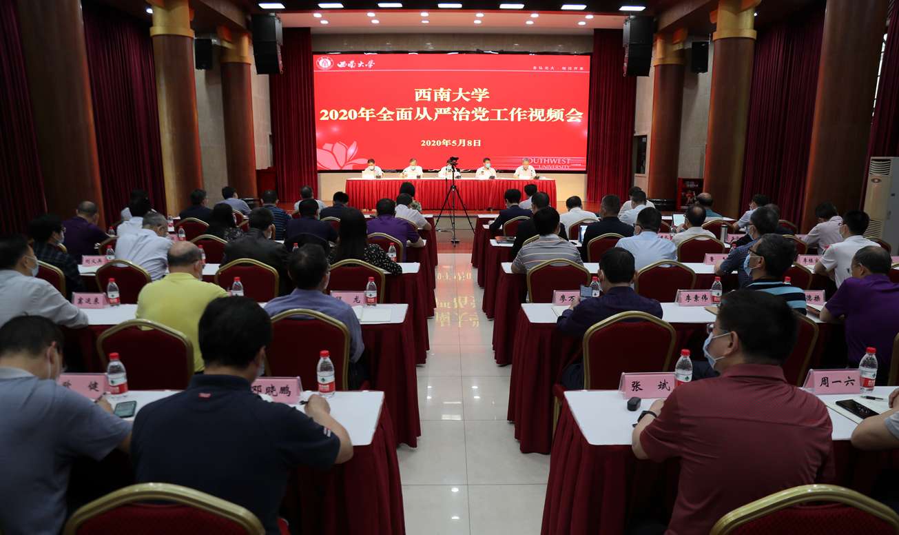 5月8日上午,学校召开2020年全面从严治党工作会议。根据疫情防控需要,大会以视频会议形式召开,主会场设在东方红会议厅,音乐学院演奏厅、第二学生活动中心107报告厅、经济管理学院B401报告厅、荣昌校区7A804会议室等4个分会场进行视频直播。全体在校校领导出席会议。会议由校长、党委副书记张卫国主持。