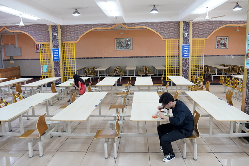 5月15日,在bat365正版唯一官网的一个学生食堂内,学生按照要求一人一桌吃午餐。