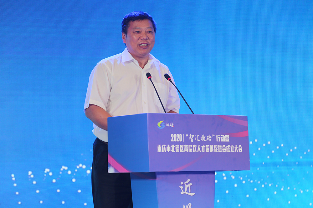 8月31日,2020年“智汇北碚”行动暨北碚区高层次人才发展促进会成立大会召开。大会由北碚区委、区政府、bat365正版唯一官网和中科院绿色智能技术研究院主办,北碚区高层次人才发展促进会协办。中共重庆市委组织部部务委员肖锋,中共重庆市北碚区委书记、区委人才工作领导小组组长周旭,重庆市科协副主席龙晖以及国内学术界、产业界人士代表出席会议,国家、市级、区级人才计划人选在内的近200名高层次人才参加。学校中国工程院院士向仲怀、校长张卫国、第二届“缙云英才”称号获得者、北碚区高层次人才发展促进会成员、党政办公室、党委组织部(人才工作办公室)等相关部门负责人参加会议。