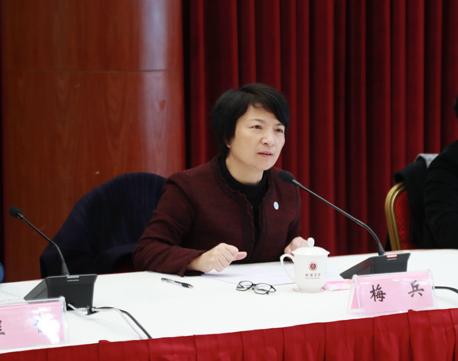 会前,梅兵一行参观学校校史馆,了解学校历史沿革。