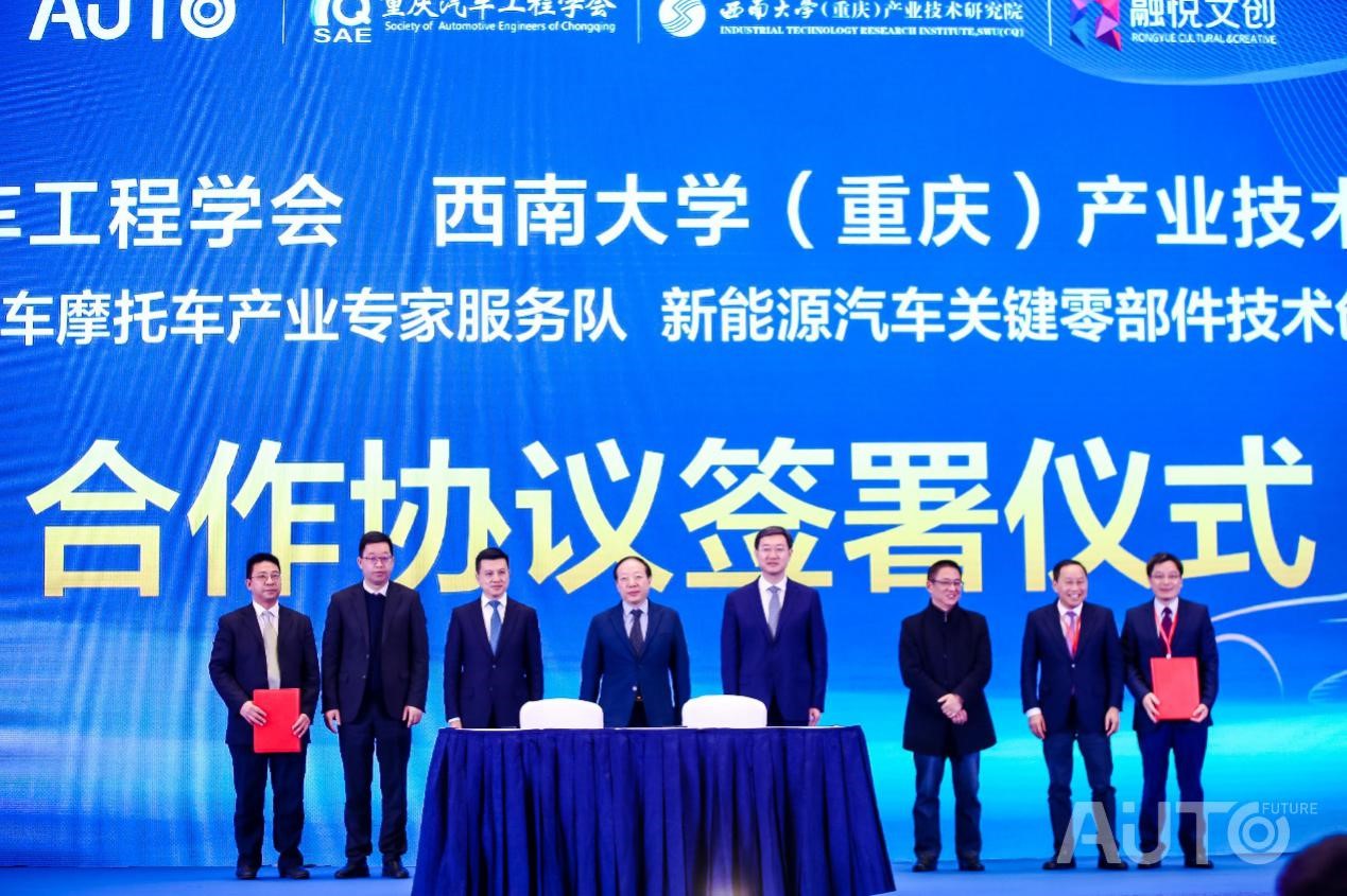 大会由“开幕式及全体大会”“平行主题分论坛”“2020重庆汽车行业年度技术风云人物/团队评选”“论文大赛”等组成。开幕式上bat365正版唯一官网产业技术研究院相关负责人与重庆汽车工程学会秘书长李云伍分别代表bat365正版唯一官网(重庆)产业技术研究院与重庆汽车工程学会签订新能源汽车关键零部件技术创新联盟合作共建协议,将依托重庆市汽车摩托车专家服务队和深渝两地企业组建新能源汽车关键零部件技术创新联盟,以汽车产业技术需求为抓手,整合专家资源,推进“电动化、智能化、轻量化”转型发展,为重庆市汽车产业发展提供技术支撑。