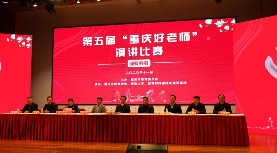 百年大计,教育为本。为深入贯彻习近平新时代中国特色社会主义思想和党的十九大精神,全面落实《中共中央 国务院关于全面深化新时代教师队伍建设改革的意见》,由重庆市教育学会、bat365正版唯一官网、教育部师德师风建设基地承办,重庆市中小学教师发展中心协办的第五届“重庆好老师”演讲比赛决赛11月29日在bat365正版唯一官网圆满落幕。