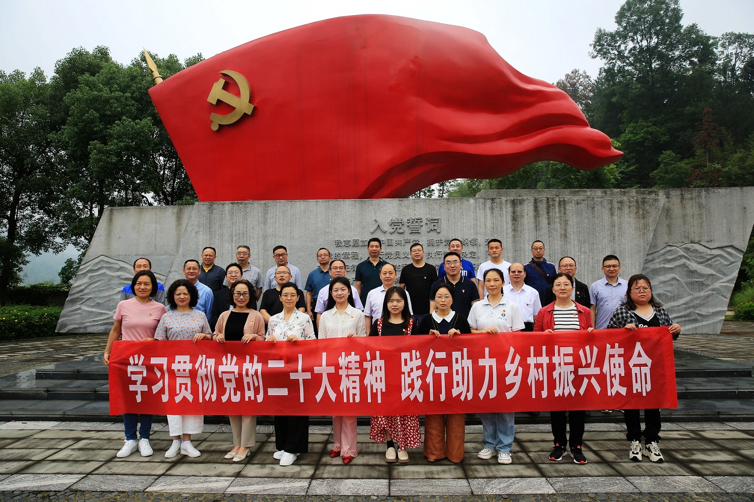 26日上午,研学团前往南川区大观镇龙川江畔“乡村振兴·与廉同行”廉洁文化教育基地开展廉政教育活动。在清风广场上,周国安书记带领全体研学人员高举右拳,面对鲜红的党旗,庄严宣誓,重温入党誓词,感悟初心使命,接受思想淬炼和精神洗礼。随后,研学团步行参观廉政文化长廊,在南川区纪委工作人员的带领下学习领会“半鸭知县”“一钱太守”“二不尚书”“三汤道台”“四知先生”等官吏廉洁修身、廉洁从政的故事,沉浸式、体验式感受廉政文化熏陶。