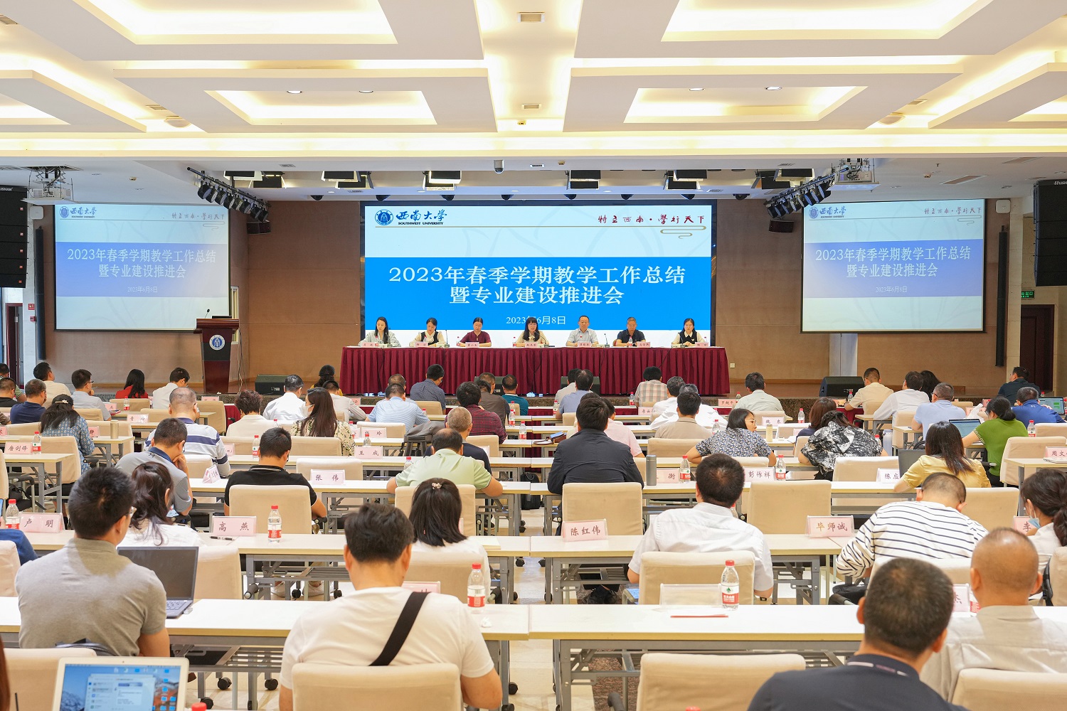教务处处长吴能表以“做有意义的变革 做有产出的创新”为主题,全面总结了2023年春季学期本科教育教学各项工作,从专业结构、专业质量、培养模式三个方面简要介绍了专业建设进展,并对近期高考评卷、审核评估、专业认证、毕业授位、课程考核等重点工作进行了部署。