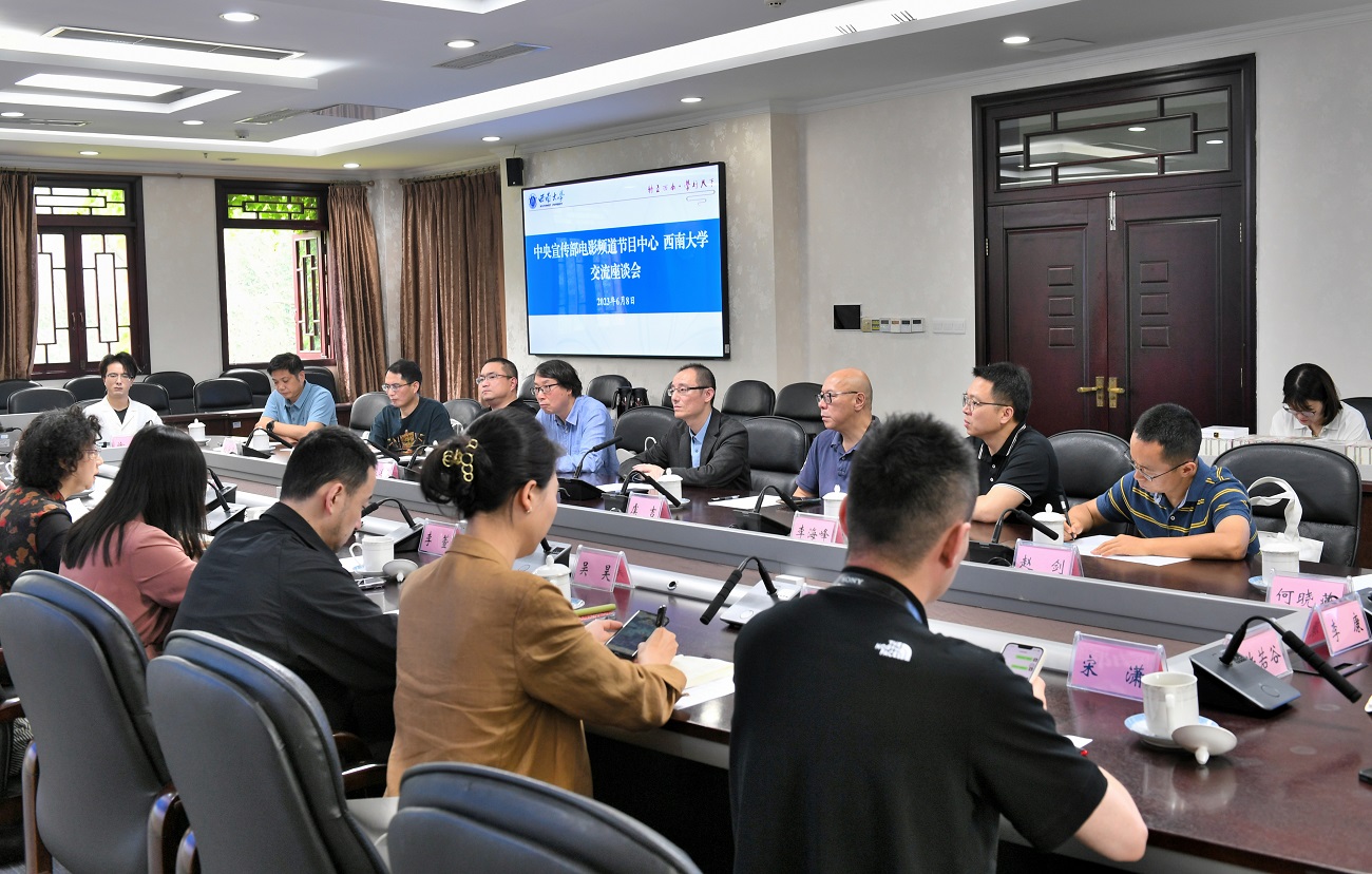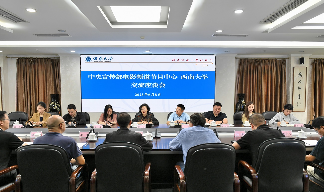 在全党深入开展学习贯彻习近平新时代中国特色社会主义思想主题教育之际,电影频道节目中心总编辑、党委副书记张玲带队来校调研交流。学校党委副书记黄杰出席座谈并致辞。电影频道节目中心总编室、国际部以及华信光影影视文化传播有限公司有关负责人,学校文学院、新闻传媒学院和美术学院专家教师等参加座谈。