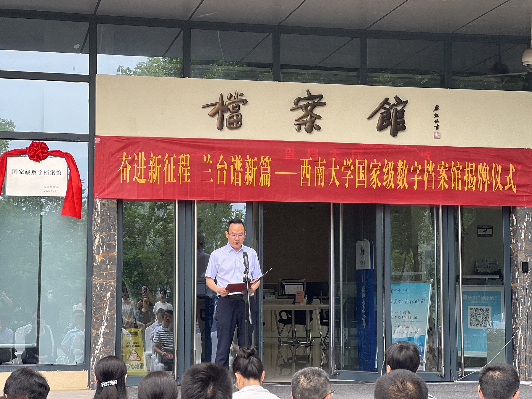学校副校长王志坚出席揭牌仪式并讲话,希望档案馆和学校各立档单位以国家级数字档案馆揭牌为契机,全面贯彻新发展理念,秉持“为党管档、为国守史、为民服务”的新时代档案人精神,牢固树立安全第一、精准服务意识,围绕学校中心工作,进一步加强档案资源建设,创新档案利用服务,为学校“双一流”建设和世界一流大学建设目标作出新的贡献。