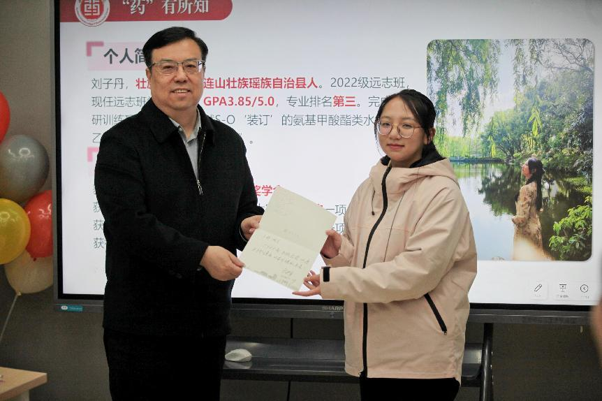 药学院党委书记陈敏、党委副书记杨坚,药学院远志班班主任、国家级青年人才邹懿教授,药学院辅导员金达、肖媛媛、陈雪梅参加活动。