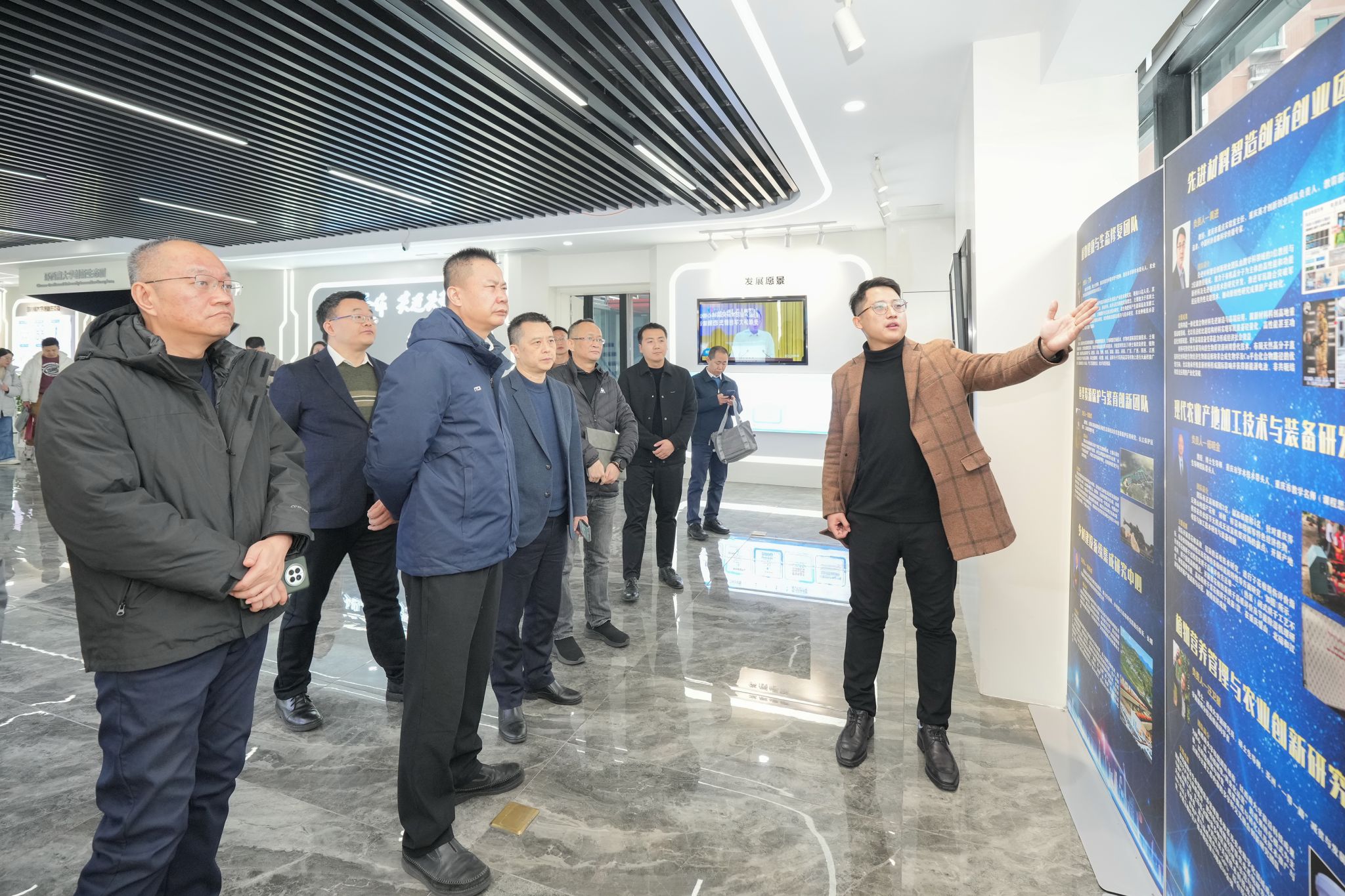 鲁仁全一行到bat365正版唯一官网(重庆)产业技术研究院参观调研,先后参观展厅、创新创业人才港、成果转化示范区,走访入驻企业,沉浸式了解学校有组织成果转移转化、创新主体孵化及校地合作情况。