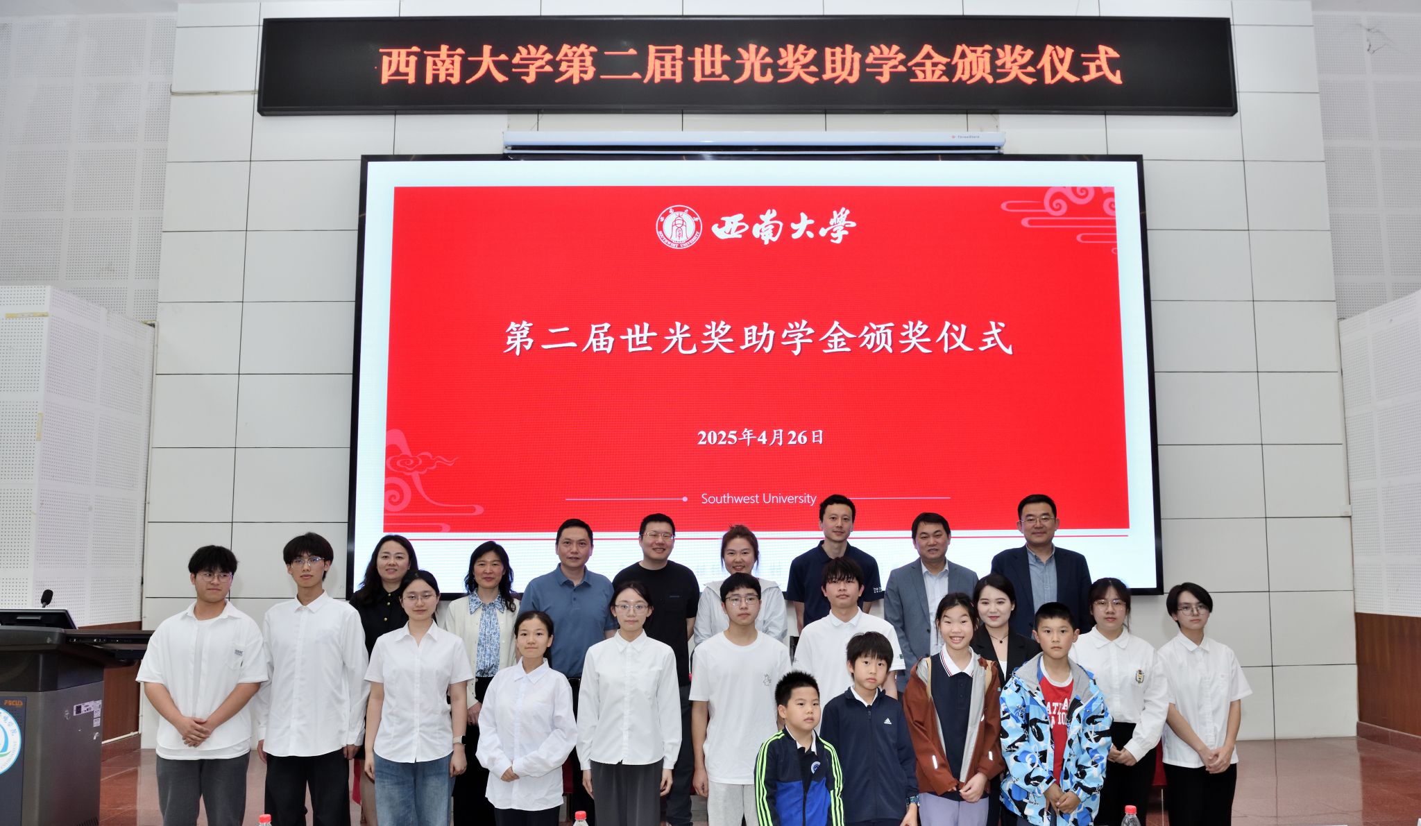 4月26日,bat365正版唯一官网第二届“世光奖助学金”颁奖仪式在资源环境学院215报告厅举行。2003级校友严世光、何洁琼、梁涛、付登伟,学校对外联络办公室、助学中心、资源环境学院负责人出席仪式。9名获奖助同学以及资源环境学院2024级全体本科生新生参加仪式。资环院党委副书记张颜主持仪式。