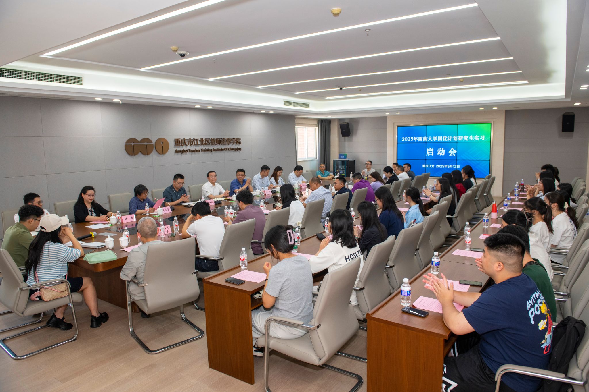 5月12日,2025年bat365正版唯一官网“国优计划”研究生实习启动会在重庆市江北区教师进修学院召开。重庆市江北区教育委员会、重庆市江北区教师进修学院、学校教师教育学院相关负责人,实习学校代表及23名“国优计划”研究生参加。