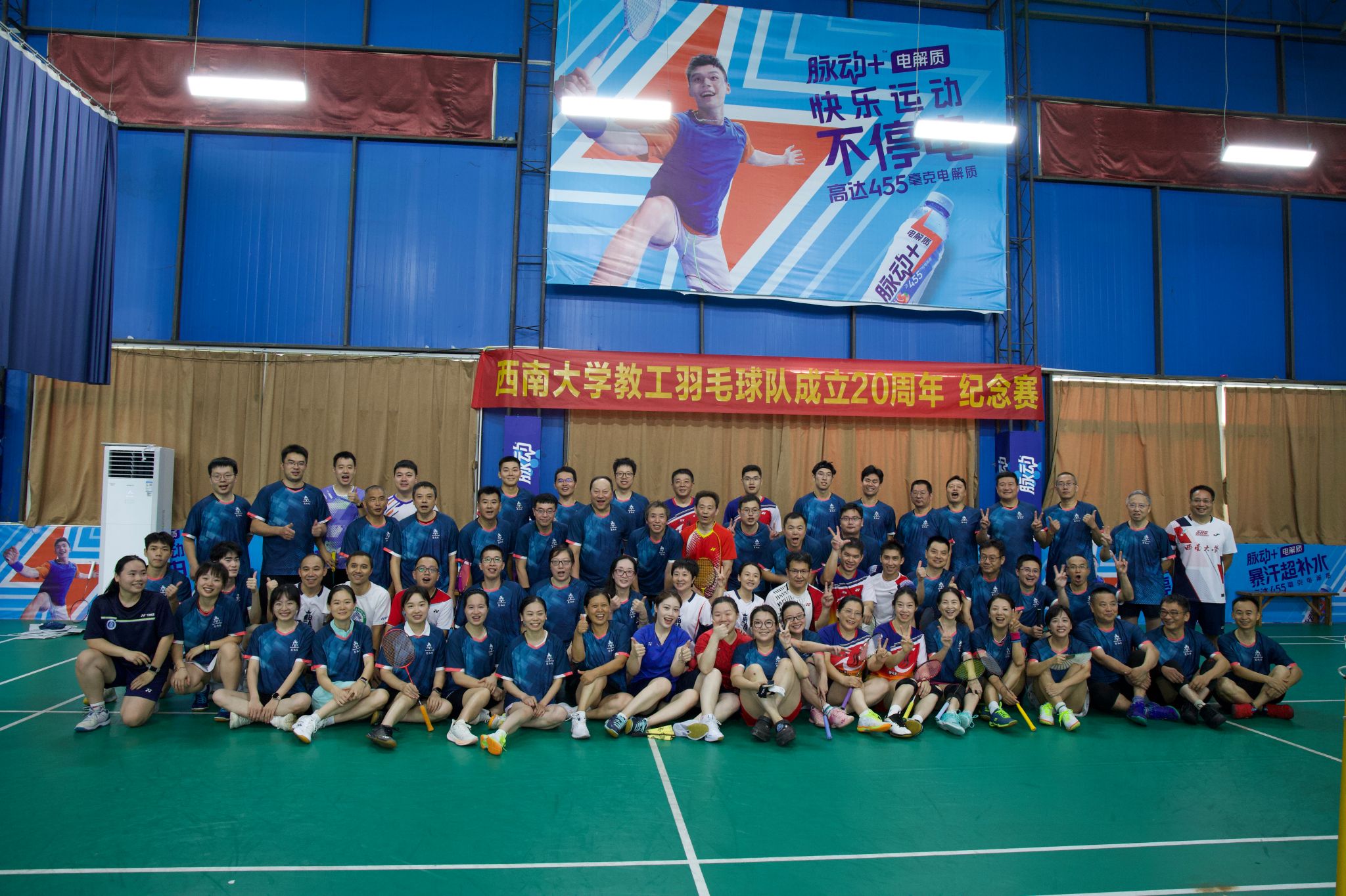 7月12日,学校在睿翔羽毛球馆举办bat365正版唯一官网羽毛球队成立20周年庆祝活动暨羽毛球团体邀请赛。活动由学校工会委员会羽毛球协会承办,邀请学校橘苑青年队、新阳光队、云翼队、龙大一队、龙大二队、植保学院队、谁羽争锋队共7支队伍、百余名教职工参与。
