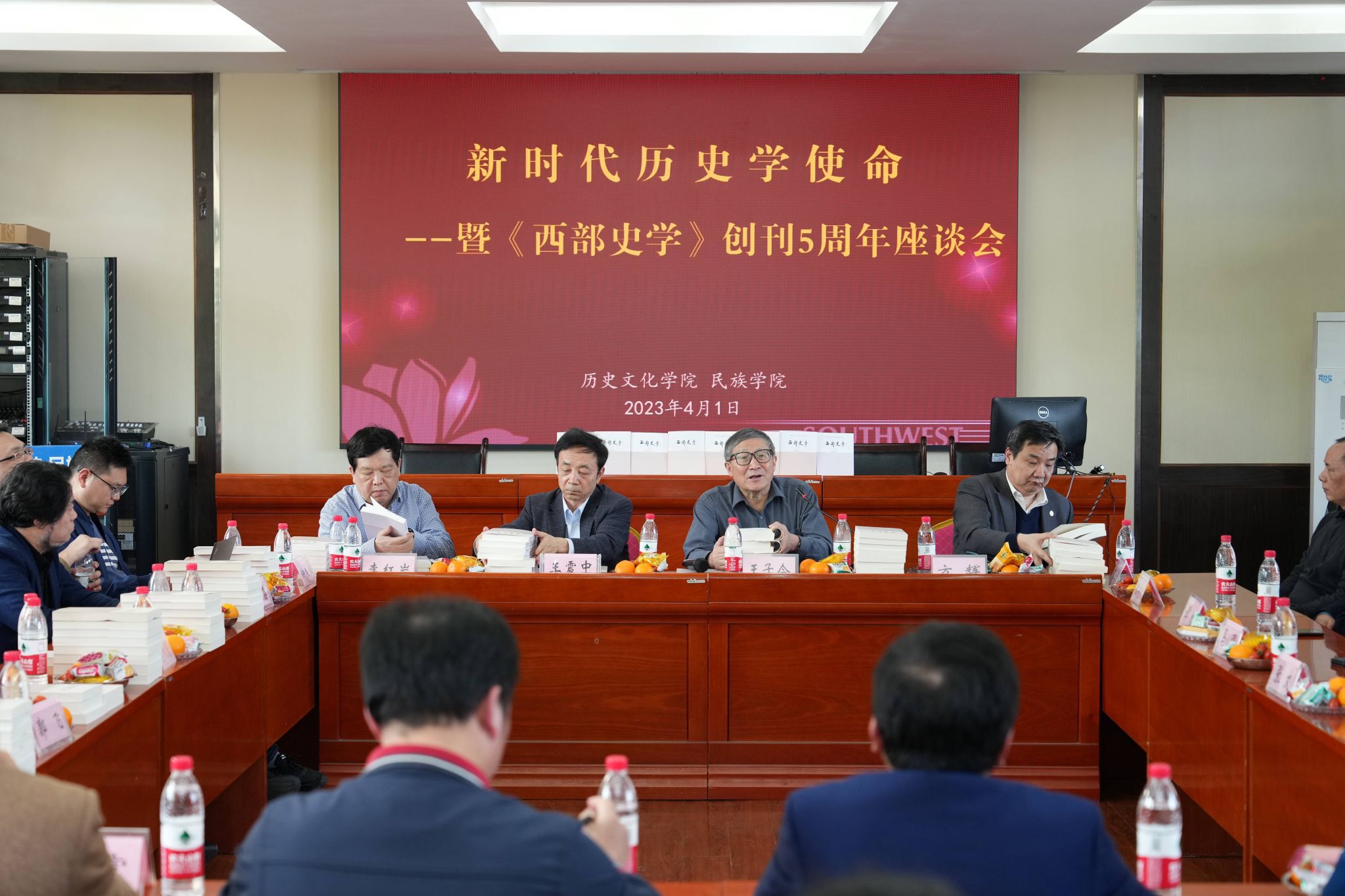 4月1日,历史文化学院 民族学院在学院报告厅成功举办“新时代历史学使命暨《西部史学》创刊5周年座谈会”。来自中国社会科学院大学、中国社会科学杂志社、中国人民大学、山东大学、烟台大学、重庆师范大学及bat365正版唯一官网期刊社、历史文化学院 民族学院的专家学者共计60余名师生出席本次座谈会。座谈会由历史文化学院 民族学院院长邹芙都主持。
