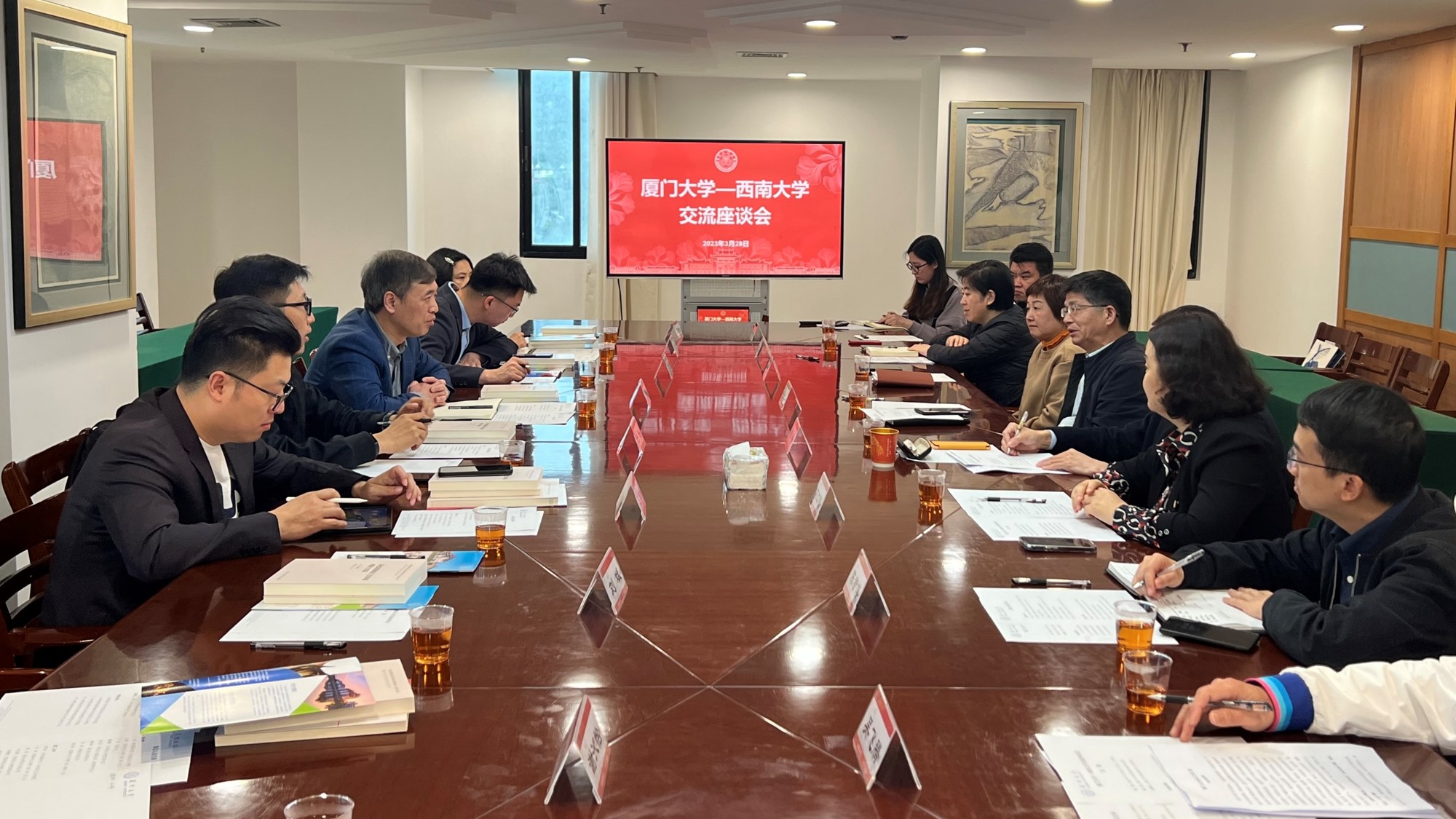 为积极响应党中央大兴调查研究号召,始终坚持以落实立德树人根本任务为宗旨,带头走进社会各界、各兄弟院校,走入师生群体开展调查研究,近日,学校党委副书记潘洵率队赴兄弟高校开展考察调研,围绕“如何提升大学生思想政治工作的实效性”“如何高质量建设新时代马克思主义学院”“如何规范学校议事协调机构建立与运行”“如何提升新时代大学生的就业工作质量”“如何加强和改进新时代大学生体育工作”等主题开展座谈交流,并深入知名企业、校友企业就人才培养、毕业生就业、产学研合作进行磋商会谈。