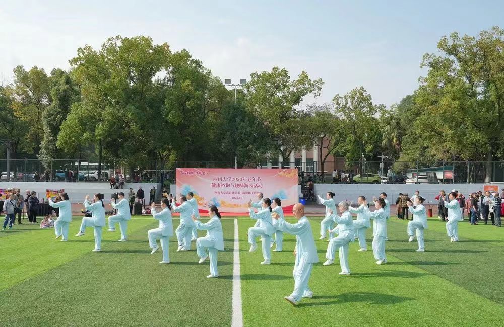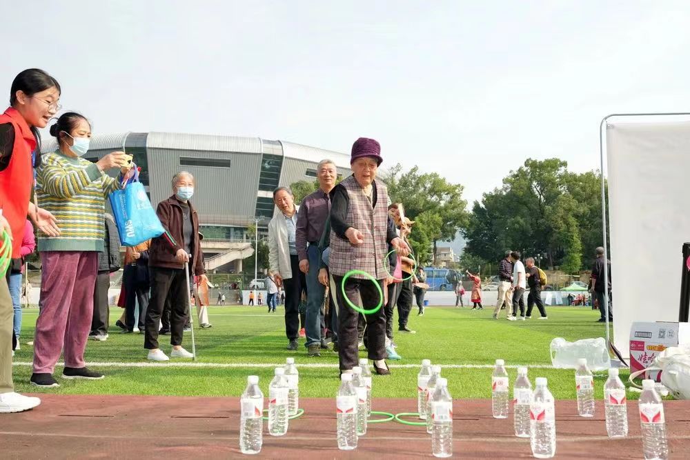 九九重阳展风姿,岁岁金秋桑榆情。为欢庆2023年老年节,丰富我校离退休教职工精神文化生活,离退休党委、离退休工作处策划组织了“心心相伴 情暖重阳”敬老月系列活动。10月22日下午,“老年健康咨询与趣味游园”活动在学校第三运动场举行,1000多名离退休老同志参加活动。