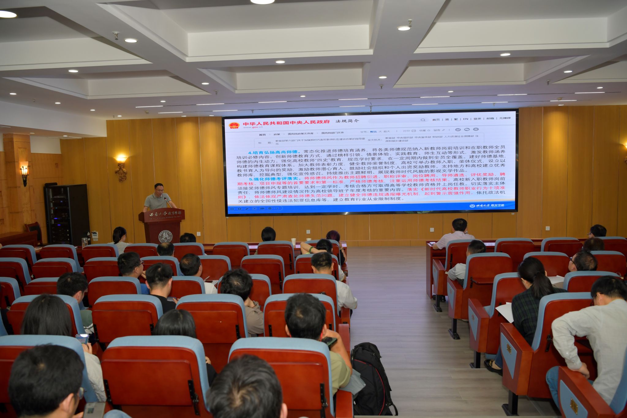 5月10日下午,bat365正版唯一官网“双一流”(教育学)师德师风建设推进会在教育学部802报告厅顺利召开。学校党委教师工作部部长李燕,发展规划与学科建设部副部长、学科建设办公室主任周琪,教育学部全体班子成员和教育学部、西南民族教育与心理研究中心教职工参加会议。会议由学部党委书记周文全主持。