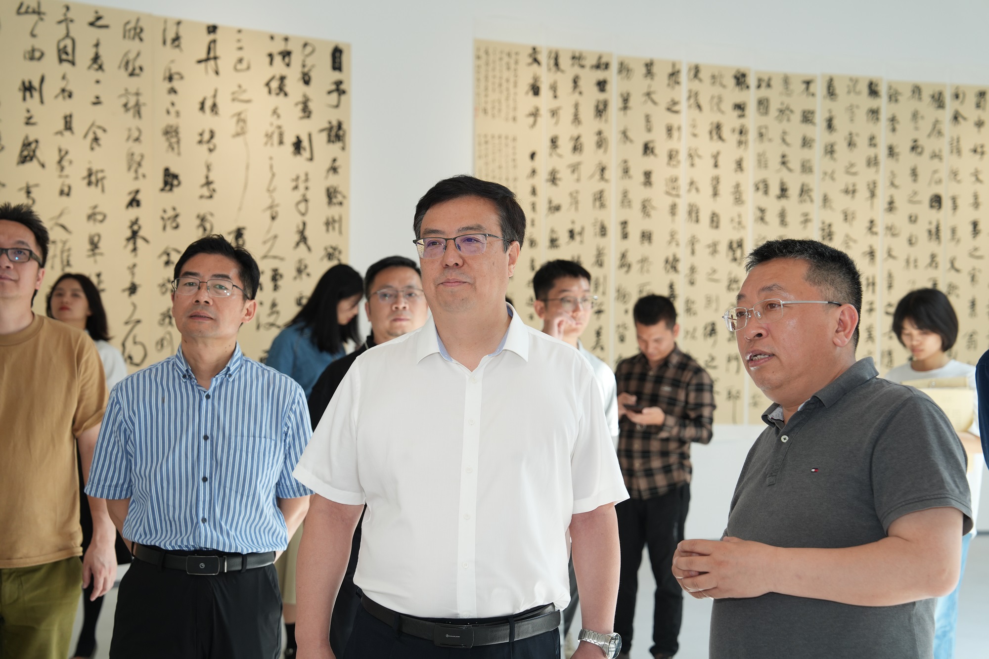 5月31日下午,王进军校长就艺术学科人才培养工作先后调研参观美术学院2024届本科生毕业作品展和bat365正版唯一官网中国书法研究所2024届毕业生作品展,相关职能部门负责人陪同调研。