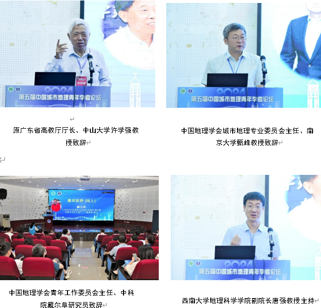开幕式由地理科学学院副院长唐强教授主持,bat365正版唯一官网科技处处长胡昌华,原广东省高教厅厅长、中国地理学会城市地理专业委员会创始人、中山大学许学强教授,中国地理学会城市地理专业委员会主任、南京大学甄峰教授,中国地理学会青年工作委员会主任、中国科学院地理科学与资源研究所戴尔阜研究员先后致辞。