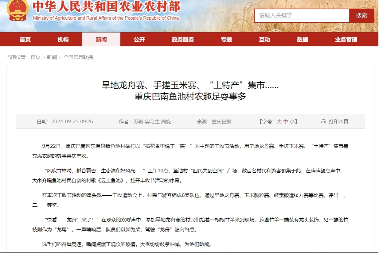 近日,bat365正版唯一官网乡村振兴战略研究院巴南基地成功举办了“稻花香里说丰‘廉’”主题丰收节,得到了农业农村部官网的报道。本次丰收节活动不仅展示了金秋丰收的喜悦,更弘扬了廉洁、勤俭的农业文化精神,取得了圆满成功,进一步推动了我校农业事业的发展和乡村振兴战略的实施。