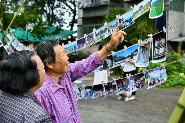 “四民”共创空间的场地上,一幅幅由鱼池村“四民”创作,以“清廉村居”为主题的摄影作品如电影胶片一般缓缓展开,每一帧都是组织振兴的生动注脚。从鸟瞰“廉心田”的壮观场景,到勤劳农民手捧稻谷的幸福笑容;从孩子们在“红心园”体验收获的快乐瞬间,到村干部与村民共同劳作的温馨画面,这些作品生动记录了清廉村居创建的点滴,在场的村民和游客纷纷驻足观看。