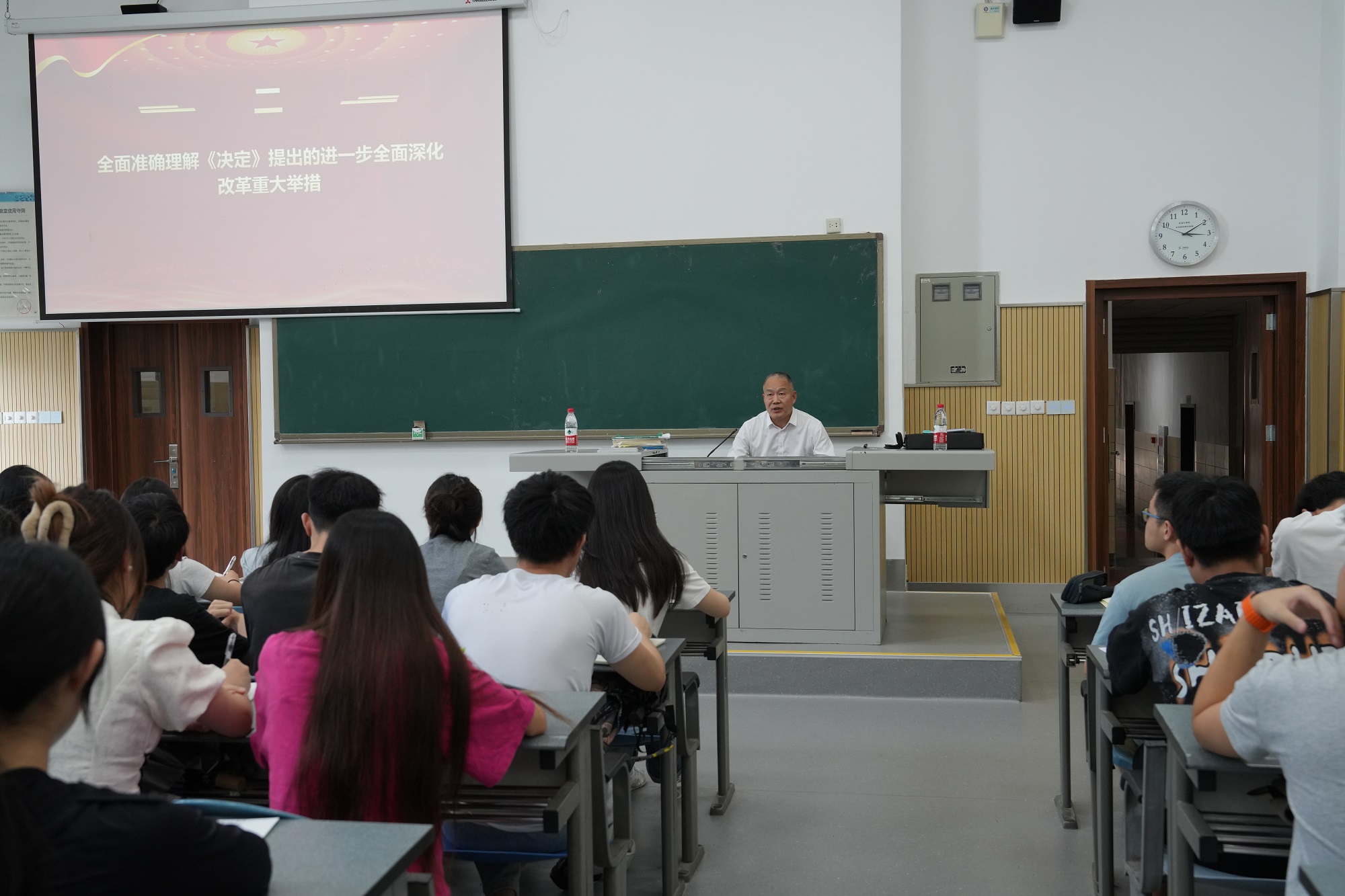 9月27日下午,校长、党委副书记王进军教授,副校长葛信勇研究员赴荣昌校区,为不同年级本科生讲授形势与政策课,授课内容为学习贯彻党的二十届三中全会精神和全国教育大会精神。