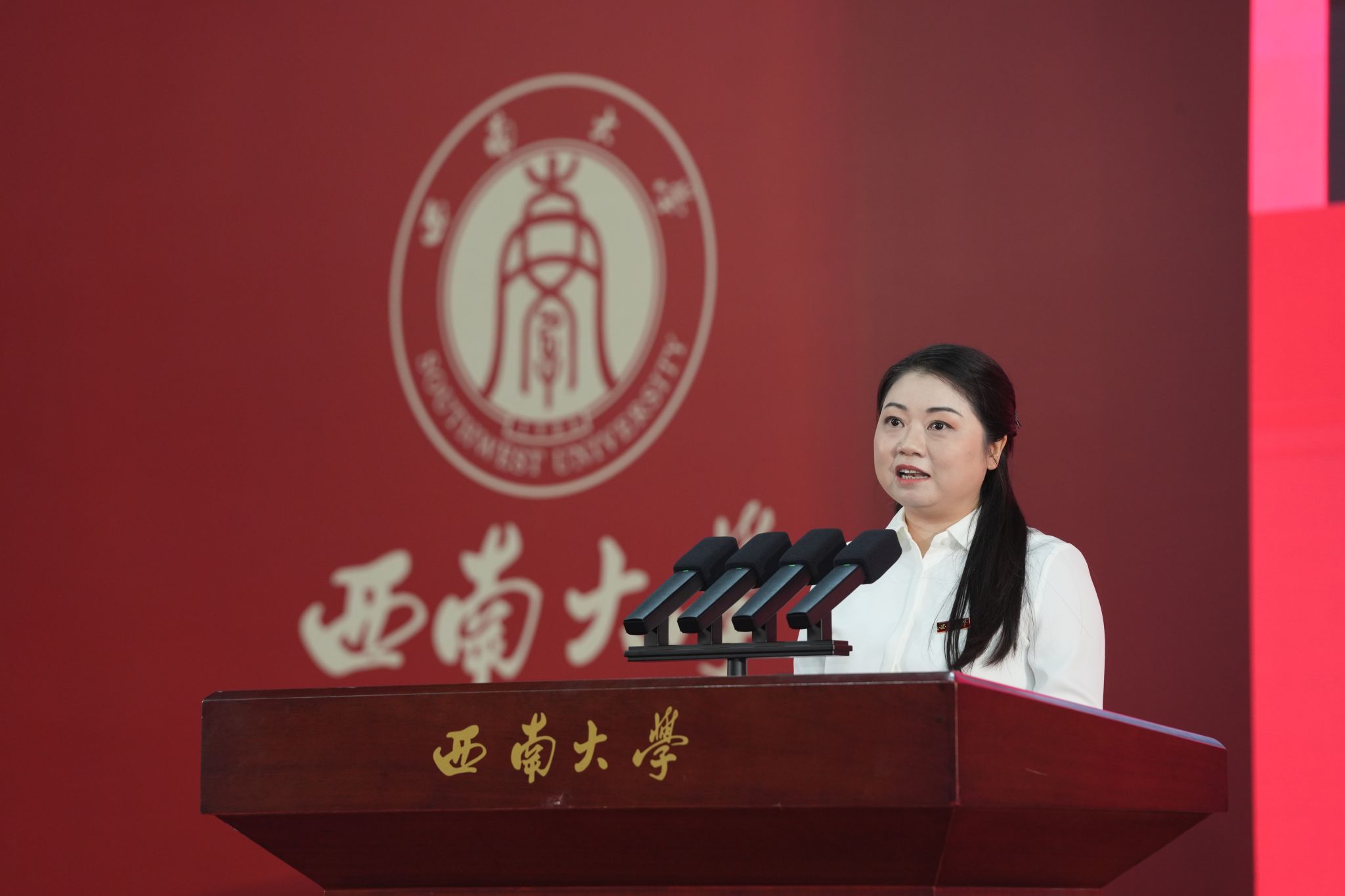 校长王进军向全体2025级本科生寄语。他鼓励同学们要以家国大义校准青春航向,与国家同呼吸、与民族共命运;以传统文化涵养责任担当,立德进学,心怀感恩,堪当大任;以拼搏实干书写青春华章,让奋斗之光与西大的百年星火交相辉映,为百年西大注入激荡的青春力量。