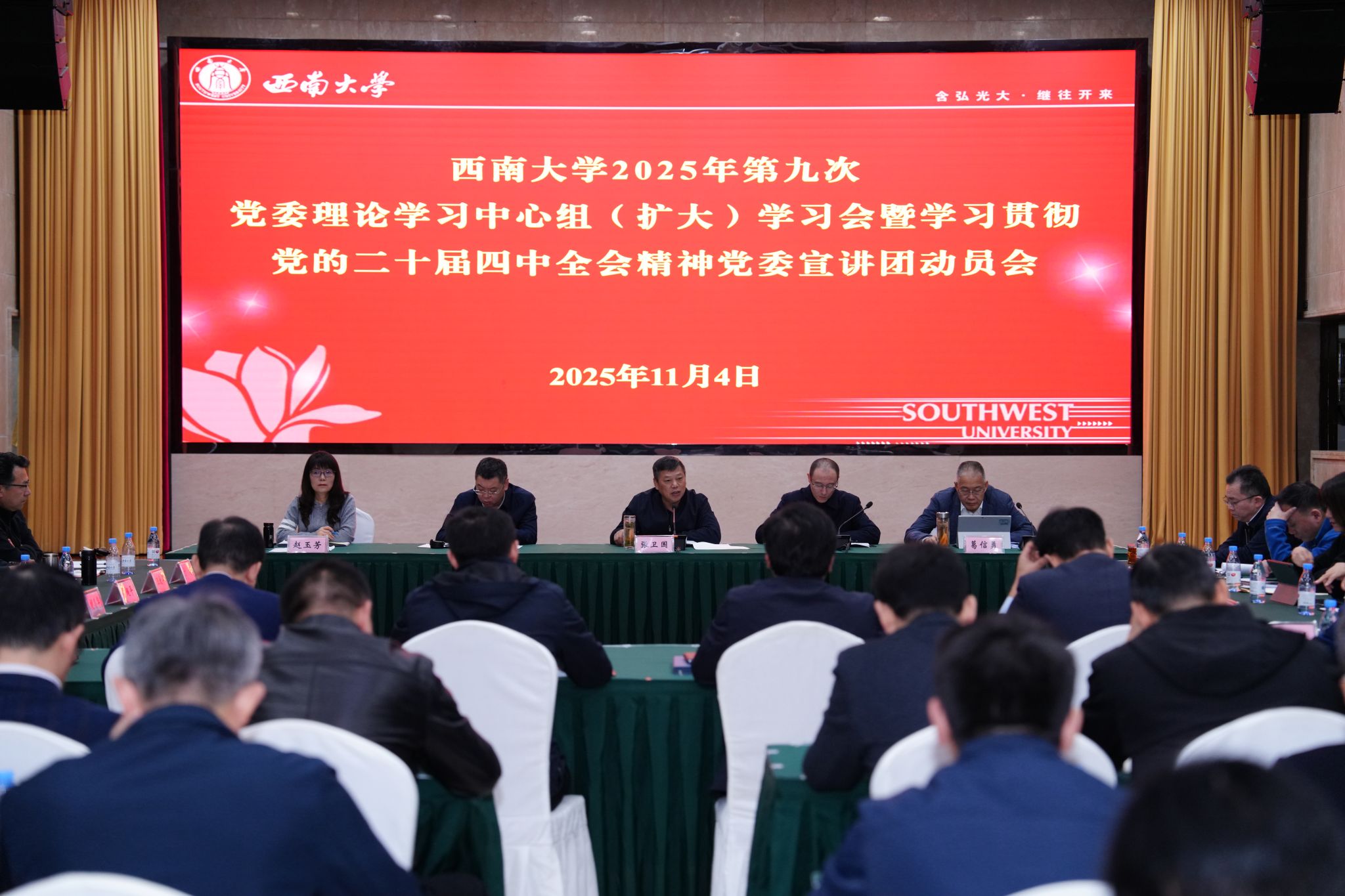 11月4日上午,学校召开2025年第九次党委理论学习中心组(扩大)学习会暨学习贯彻党的二十届四中全会精神党委宣讲团动员会,深入学习领会习近平总书记重要讲话和全会精神,安排部署学校学习宣传贯彻落实意见。党委书记张卫国主持会议并讲话。
