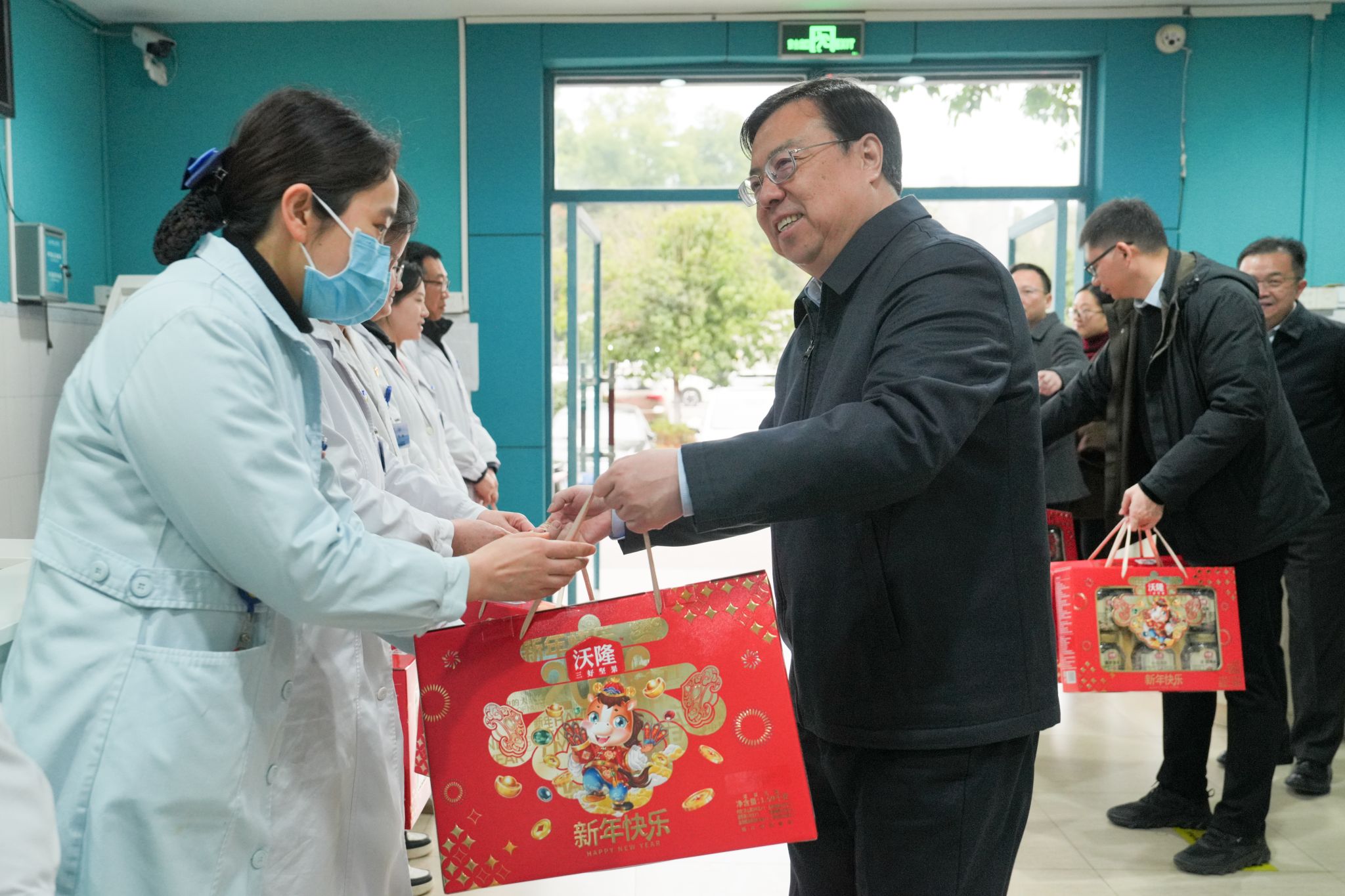 2月16日除夕上午,校长王进军、副校长邱江带队走访慰问春节期间坚守一线的教职员工和留校学生,向他们致以节日问候,并送上慰问品。